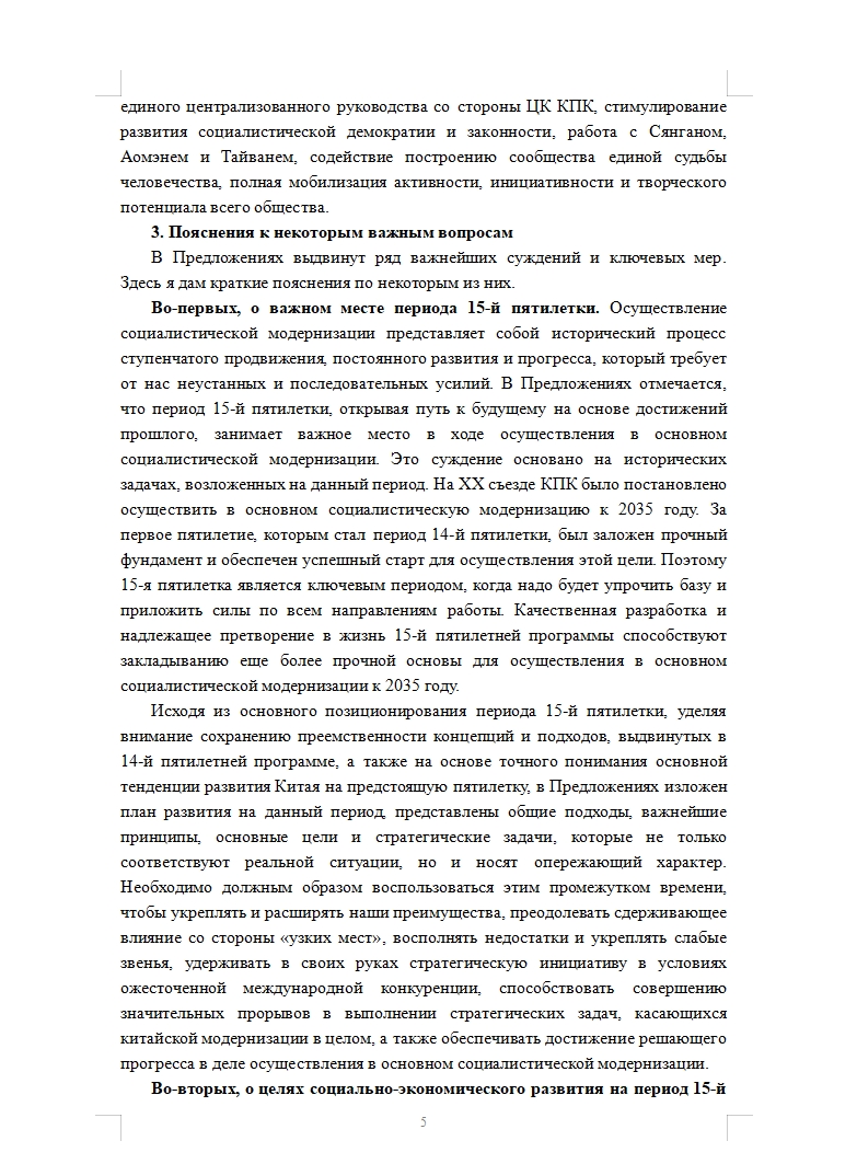 ПОЯСНЕНИЯ К «ПРЕДЛОЖЕНИЯМ ЦК КПК ПО РАЗРАБОТКЕ 15-Й ПЯТИЛЕТНЕЙ ПРОГРАММЫ НАРОДНОХОЗЯЙСТВЕННОГО