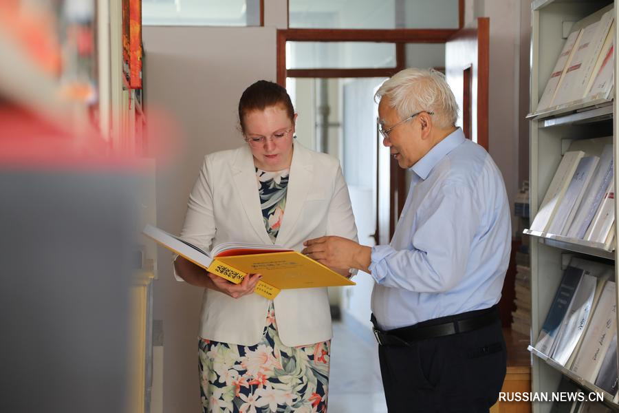 15 сентября 2022 года, Ольга Пронькина общается со своим научным руководителем профессором Чжэн Бинлинем /справа/ в городе Ланьчжоу провинции Ганьсу на северо-западе Китая. /Фото: Синьхуа/